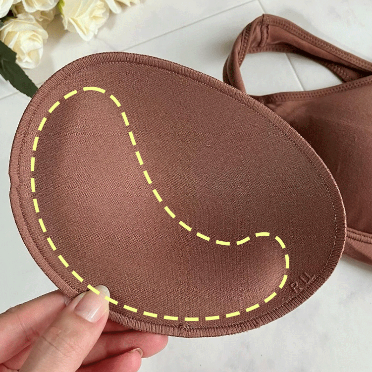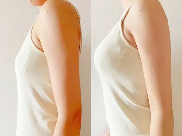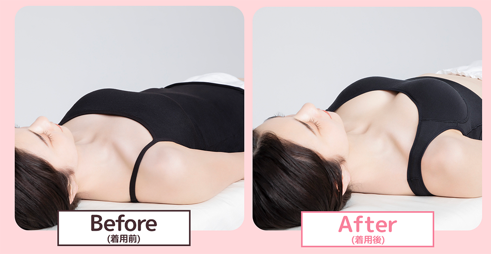 重力でバストが上下左右に広がるので